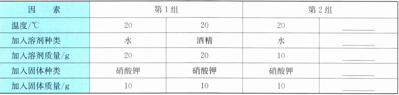 。(3)第 2 组实验中要研究溶解性与溶质种类的关系,请将表格内容填写完整。