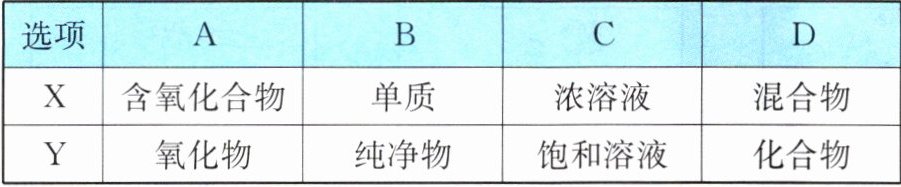 7. 右图表示$X$和$Y$的相互关系,下表中符合图示关系的是(
