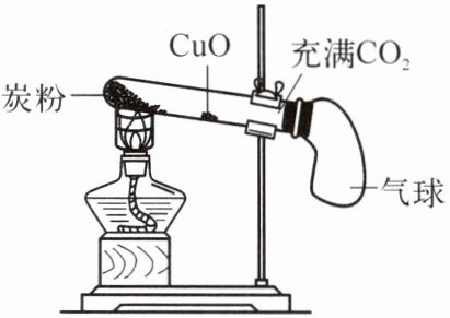 13. 某小组利用如图装置进行创新实验。实验时,先加热炭粉,一段时间后,将酒精灯移至 $\mathrm{CuO}$ 处加热。下列说法错误的是(