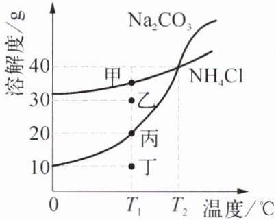 )A.$T_{1}{ }^{\circ} \mathrm{C}$ 时,乙是 $\mathrm{NH}_{4} \mathrm{Cl}$ 的不饱和溶液