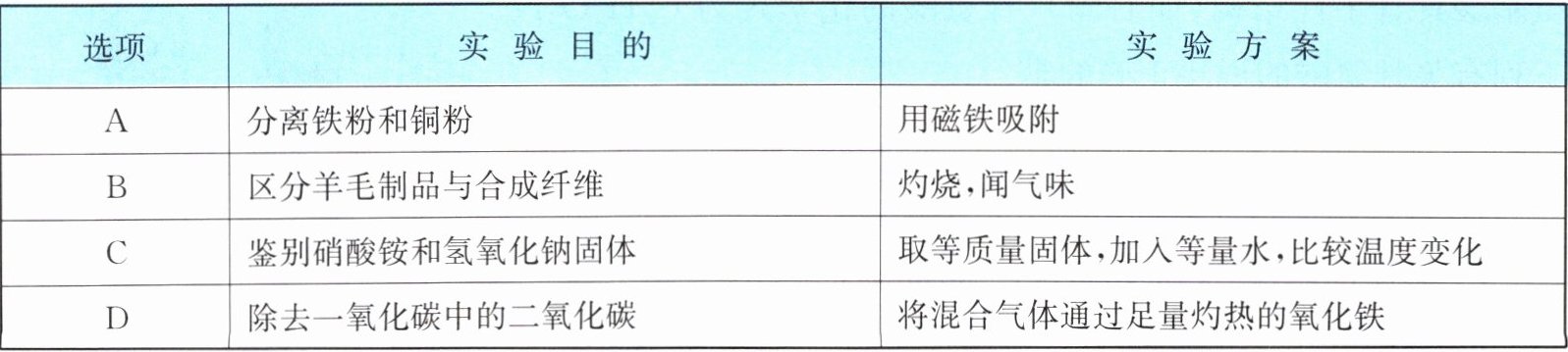 14. 下列实验方案中,不能达到实验目的的是(