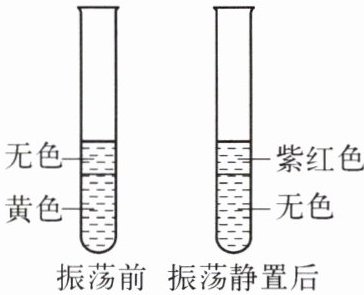 2. 向 6 mL 碘的水溶液(黄色)中加入 2 mL 汽油(无色),振荡静置,实验现象如右图所示。由该实验不能得出的结论是(