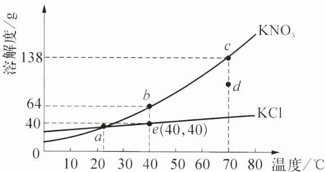 B.在$70^{\circ}\mathrm{C}$时,将$238\mathrm{g}{KNO3}$溶液降温至$40^{\circ}\mathrm{C}$,析出$74\mathrm{g}{KNO3}$