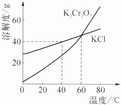 A. 由溶解度曲线可知,低于交点温度时,$\mathrm{K}_2\mathrm{Cr}_2\mathrm{O}_7$的溶解度比$\mathrm{KCl}$小,A错误;
