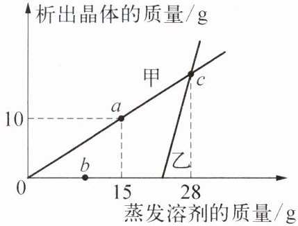 8. 20℃时,将一定质量的甲、乙两种溶液进行恒温蒸发,蒸发溶剂的质量与析出晶体的质量关系如图所示(图中两线相交于c点)。下列分析错误的是(