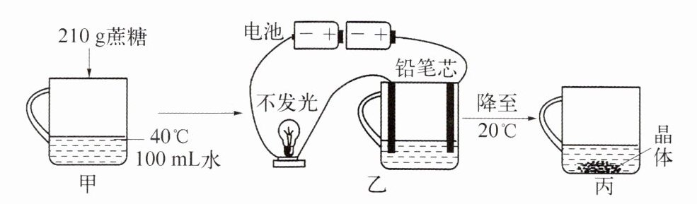 15. 小明在家中用蔗糖和其他常见物品进行了下图小实验,结合表中数据,下列叙述正确的是(