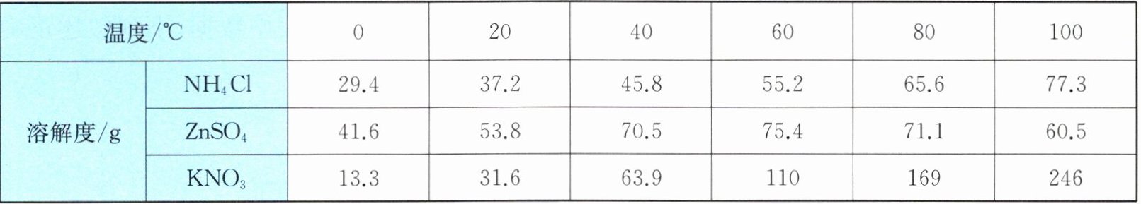 17. NH₄Cl、ZnSO₄、KNO₃是配制无土栽培营养液常用的三种物质,它们在不同温度时的溶解度如下表所示。
