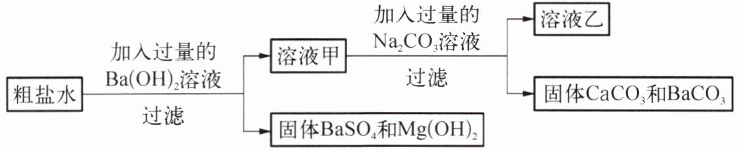 3. 氯化钠是生活中常见的盐,为除去某粗盐水中的${MgSO_{4}}$、${CaCl_{2}}$杂质,得到${NaCl}$溶液,某化学小组设计了如下实验方案。