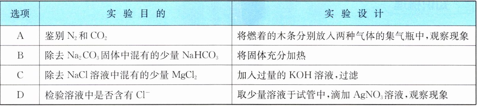 4. 下列实验设计能达到实验目的的是(
