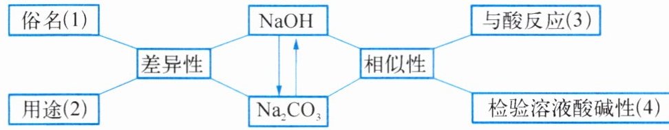5. 以典型物质为核心,进行问题的设置与整合是我们全面认识物质性质及应用的有效途径。小明同学在小组合作学习过程中,对氢氧化钠和碳酸钠的有关问题以结构图的形式进行了右下图梳理。联系实际,解决问题。