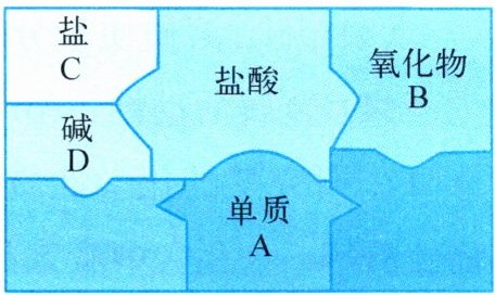 11. 右图是包含物质ABCD和盐酸卡片的化学拼图,相邻两张卡片所标的物质间可以发生反应。下列说法正确的是(