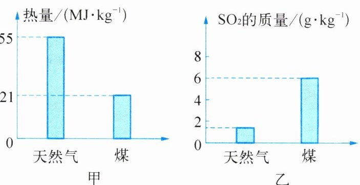 (1)小红查阅资料得知,充分燃烧煤或天然气释放的热量和产生的二氧化硫的质量如右图所示。请结合图甲、图乙的信息分析家庭燃料从煤升级到天然气的原因: