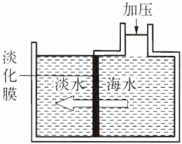 9. 海水淡化可采用膜分离技术。如右图所示,对淡化膜右侧的海水加压,水分子可透过淡化膜进入左侧淡水池,而海水中各种离子不能透过淡化膜,从而得到淡水。加压后,右侧海水中发生变化的量有