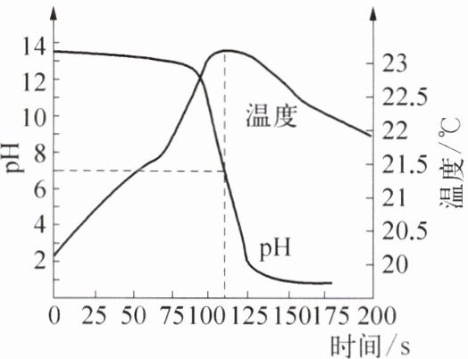 14. 为探究稀盐酸和氢氧化钠溶液反应过程中溶液的pH及温度随时间的变化关系,右图是数字采集器和计算机实时显示的数据曲线。下列说法错误的是(