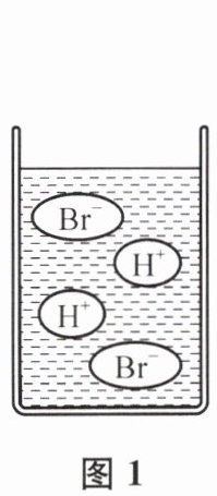 (1)图1和图2分别是溴化氢(HBr)和乙醇(C₂H₅OH)在水中的微观示意图。请你结合已有的酸、碱知识,判断溴化氢的水溶液显