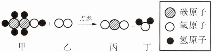 解:由微观示意图可知,甲为${C2H5OH}$,乙为${O2}$,丙为${CO2}$,丁为${H2O}$,反应的化学方程式为${C2H5OH + 3O2\xlongequal{\mathrm{点燃}}2CO2 + 3H2O}$。