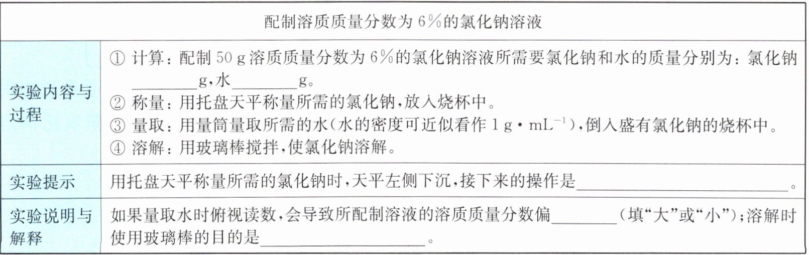 ③ 量取:用量筒量取所需的水(水的密度可近似看作 1g·mL⁻¹),倒入盛有氯化钠的烧杯中。