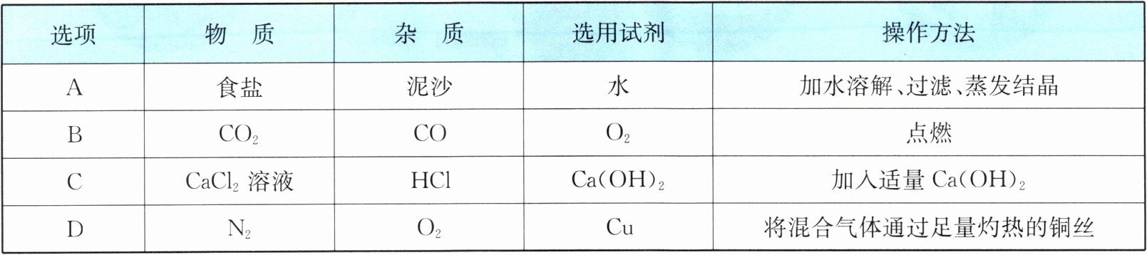D. 氧气与灼热的铜丝反应生成氧化铜,氮气不与铜反应,可除去氧气,能达到目的。