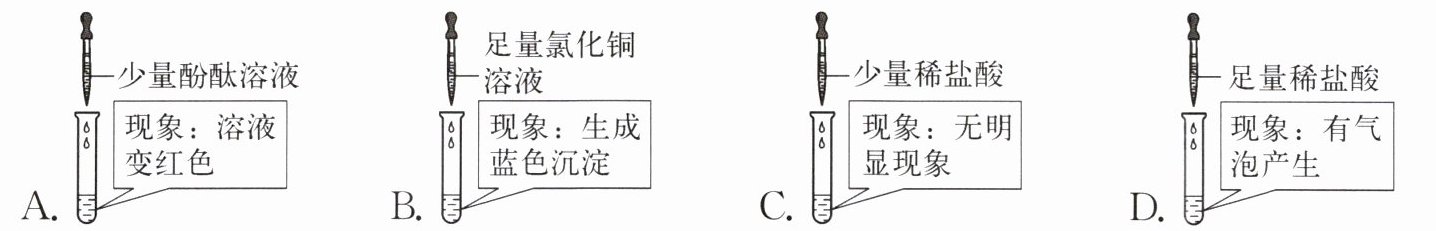 B选项:滴加足量氯化铜溶液,氢氧化钠与氯化铜反应生成氢氧化铜蓝色沉淀,若溶液未变质也会产生相同现象,不能证明变质。