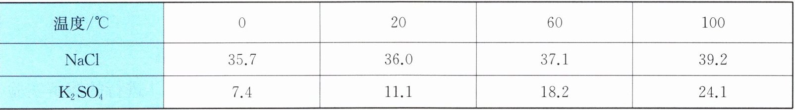 17. (5分)硫酸钾是重要的化工原料,在生产过程中常混有氯化钠。它们的部分溶解度数据见下表: