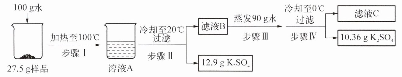 (填“达到”或“未达到”)饱和状态。②步骤Ⅱ中从溶液A中获得12.9g K₂SO₄晶体的方法是
