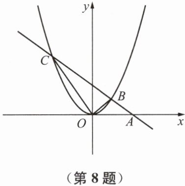 8. 如图,已知二次函数 $ y = ax^2(a > 0) $ 的图像与直线 $ AB $ 相交于 $ B $、$ C $ 两点,且点 $ A $ 的坐标是 $ (2,0) $,点 $ B $ 的坐标是 $ (1,1) $。