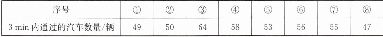 2. 某市九年级(1)班的一个研究性学习小组的研究课题是该市某高速公路入口的汽车流量问题.某天上午,他们在该入口处采用简单随机抽样的方法,对 3 min 内通过的汽车数量进行统计,得到如下数据: