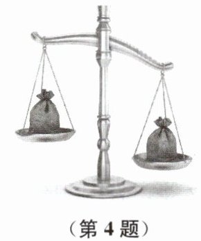 4. 如图,在一个天平左、右两端托盘上,分别放置质量为 20 g 和 70 g 的物品.现从质量为 10 g、20 g、30 g、40 g 的四件物品中,随机选取两件放在天平左端的托盘上,求天平平衡的概率.
