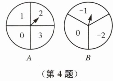 4. 如图,有两个可以自由转动的转盘 A、B 分别被分成 4 等份、3 等份,每份内均标有数字.小明和小丽用这两个转盘做游戏,游戏规则如下: