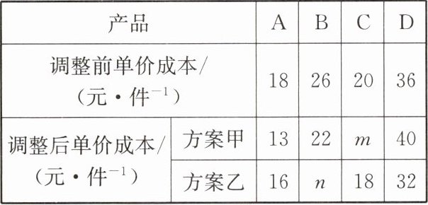 (2)若调整后这四种产品的年产量均与调整前的相同,请通过计算说明甲、乙两种方案哪种总成本较低.