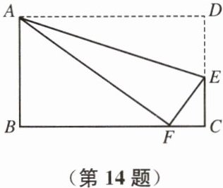 14. (8分)如图,将矩形纸片$ABCD$沿$AE$折叠,使点$D$落在边$BC$上的点$F$处.已知$AB = 3\ \mathrm{cm}$,$AD = 5\ \mathrm{cm}$,求$DE$的长.