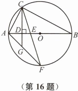 16. (9分)已知:如图,$AB$是$\odot O$的直径,点$C$在$\odot O$上,$CD ⊥ AB$,垂足为$D$,弦$CF$交$AB$于点$E$,$CD$的延长线交$AF$于点$G$.