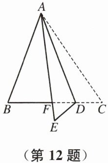 12. 如图,在△ABC中,$\tan C=\frac{4}{3}$,D是边BC上一点,将△ACD沿AD翻折得到△AED,线段AE、BC相交于点F。若CF=5,EF=2,则AC=