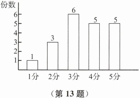 13. 某公司为提高服务质量,对其某个部门开展了客户满意度问卷调查,满意度从低到高依次为1分、2分、3分、4分、5分,共5个等级.公司规定:若客户所评分数的平均数或中位数低于3.5分,则该部门需要对服务进行整改.工作人员从收回的问卷中随机抽取了20份,下图是根据这20份问卷中的客户评分绘制的统计图.