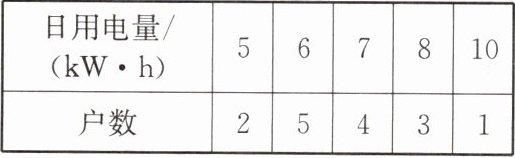 7. 为了解某小区居民的日用情况,居住在该小区的一名同学随机抽查了 15 户家庭的日用电量,结果如右表。关于这 15 户家庭的日用电量,下列说法中,错误的是(