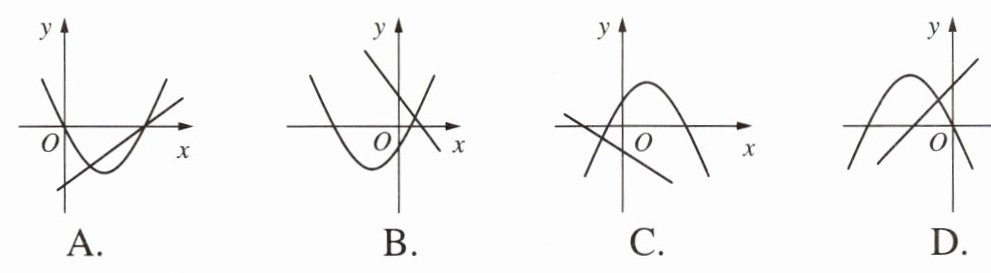 2. 在同一平面直角坐标系中,一次函数$y = ax + b$的图像和二次函数$y = ax^2 + bx$的图像可能为(