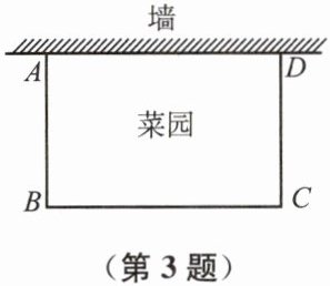 3. 如图,李大爷要借助院墙用篱笆围成一个矩形菜园 $ABCD$,用篱笆围成的三边总长为 $24$ m,则矩形菜园 $ABCD$ 的最大面积为