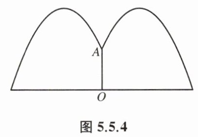例 2 如图 5.5.4,公园要建造一个圆形的喷水池,在水池中央垂直于水面处安装一根柱子 OA,柱高 1.25 m,出水口为点 A.水流在各个方向沿形状相同的抛物线下落,为使水流形状较为漂亮,要求设计成水流在距柱子 OA 水平距离为1 m 处达到距水面最大高度,最大高度为 2.25 m.