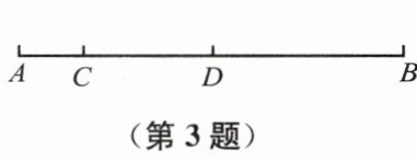 3. 如图,点 $C$、$D$ 在线段 $AB$ 上,且 $AC = 1\ \mathrm{cm}$,$CD=$ $2\ \mathrm{cm}$,$DB = 3\ \mathrm{cm}$,则 $\frac{AC}{AD}=$