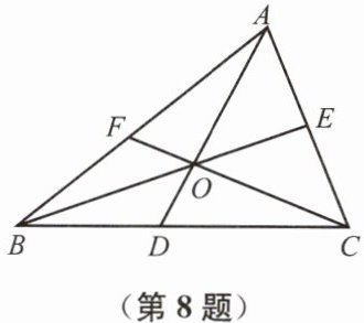 8. 如图,在 $\triangle ABC$ 中,$AD$、$BE$、$CF$ 相交于点 $O$,$\triangle BOF$、$\triangle BOD$、$\triangle AOF$、$\triangle COE$ 的面积分别为 $30$、$35$、$40$、$84$. 你能求出 $\triangle ABC$ 的面积吗?