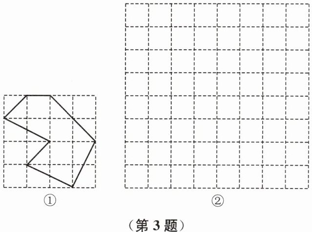 3. 在如图的网格中,将图①网格中的图形放大为原来的 2 倍,并画在图②网格中.