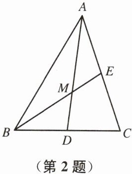 2. 如图,已知$M$为$\triangle ABC$的重心,则$\frac{AM}{DM}$的值为