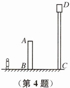 4. 如图,小张向教学楼 AB 走去,他发现教学楼后面有一水塔 DC.已知教学楼、水塔的高分别是 19.5 m 和 31.5 m,它们之间的距离为 18 m,小张眼睛到地面的距离为 1.5 m.在小张走向教学楼的过程中,当他与教学楼之间的距离小于