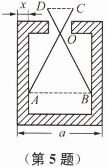 5. 如图,已知一零件的外径 a=35 cm,为求它的厚度 x,需先求出内孔的直径 AB.现用一个交叉卡钳测量,已知卡钳的尺长 AC 与尺长 BD 相等,OA:OC=OB:OD=3,且量得 CD=10 cm,求零件的厚度 x.