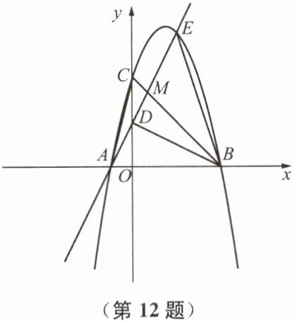 12. 如图,在平面直角坐标系中,已知二次函数 $y = ax^{2}+bx + c$ 的图像与 $x$ 轴交于 $A$、$B$ 两点,与 $y$ 轴交于点 $C$,$D$ 是 $OC$ 的中点,直线 $AD$ 交二次函数 $y = ax^{2}+bx + c$ 的图像于点 $E(2,6)$,且$\triangle ABE$ 与$\triangle ABC$ 的面积之比为 $3:2$.