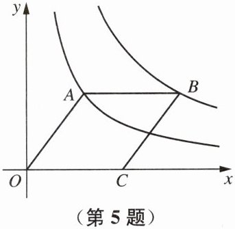 5. 如图,在平面直角坐标系中,四边形 $ AOCB $ 为菱形,$ \tan \angle AOC = \dfrac{4}{3} $,且点 $ A $ 落在反比例函数 $ y = \dfrac{3}{x} $ 的图像上,点 $ B $ 落在反比例函数 $ y = \dfrac{k}{x} (k \neq 0) $ 的图像上,则 $ k = $