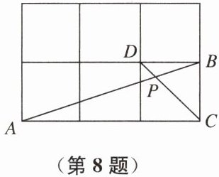 8. 如图,在正方形网格中,$ A $、$ B $、$ C $、$ D $ 四点都是格点,若 $ AB $、$ CD $ 相交于点 $ P $,则 $ \dfrac{AP}{PB} $ 的值为