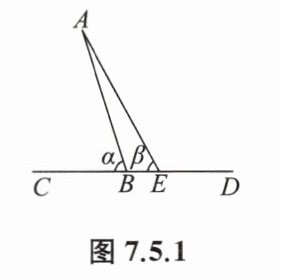 例2 如图7.5.1,已知sinα=24/25,tanβ=3,BE=20,求AB的长.