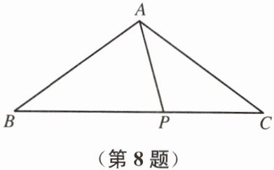 8. 规定:有两个内角的差为90°的三角形称为“反直角三角形”.如图,在△ABC中,AB=AC=5,BC=8,P为边BC上一点,若△APC为“反直角三角形”,求BP的长.