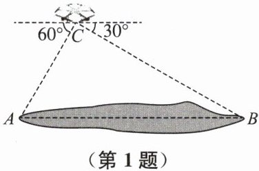 1. 如图,某科技小组用无人机测量湖泊两端 $ A $,$ B $ 的距离.他们将无人机上升至距湖面 $ 90 \mathrm{~m} $ 的点 $ C $ 处.从点 $ C $ 测得点 $ A $ 的俯角为 $ 60^{\circ} $,点 $ B $ 的俯角为 $ 30^{\circ} $($ A $,$ B $,$ C $ 三点在同一竖直平面内),则湖泊两端 $ A $,$ B $ 的距离为